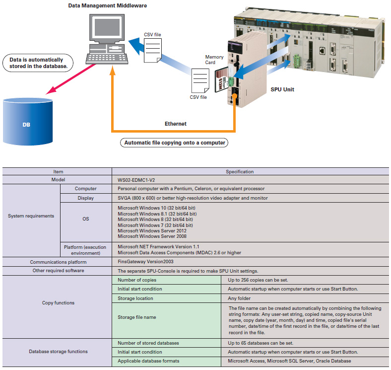 Using an SPU Unit, however, eliminates the need for a PLC with a large-capacity memory and also eliminates the need for programming data collection in the ladder program.