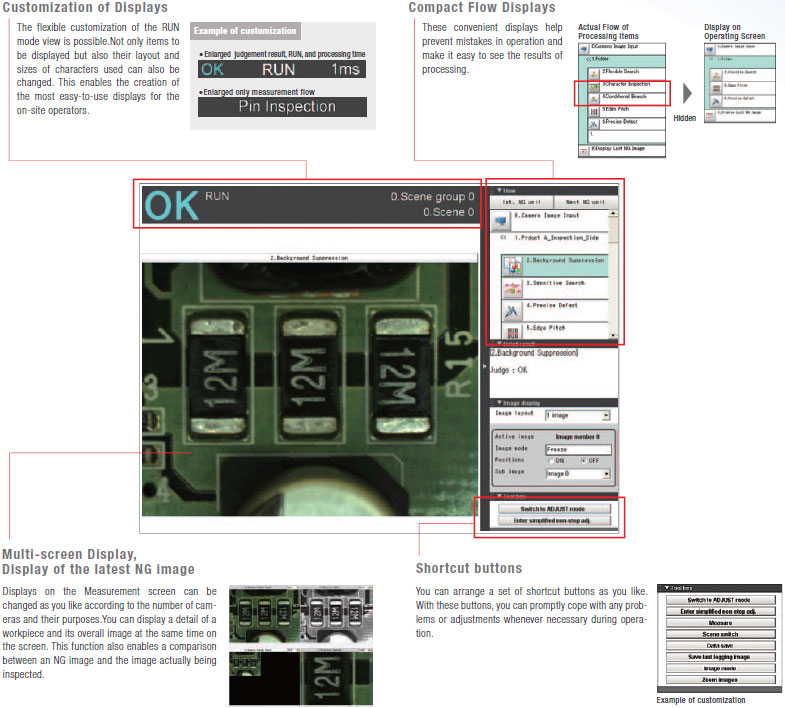 Settings must be verified with as many images as possible. Wi th OMRON's FZ4, cont inuous measurements of hundreds of images can be performed by a single click.